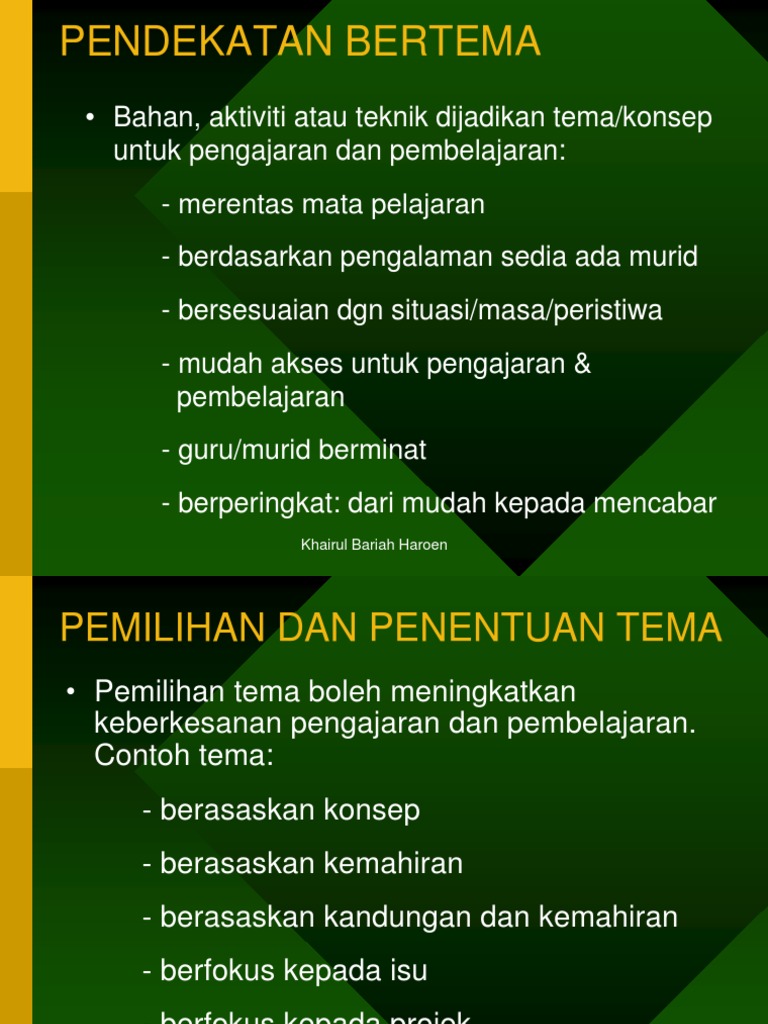Pendekatan Bertema Bahan Aktiviti Atau Teknik Dijadikan Tema Konsep Untuk Pengajaran Dan Pembelajaran Merentas Mata Pelajaran Berdasarkan Pengalaman Ppt Download